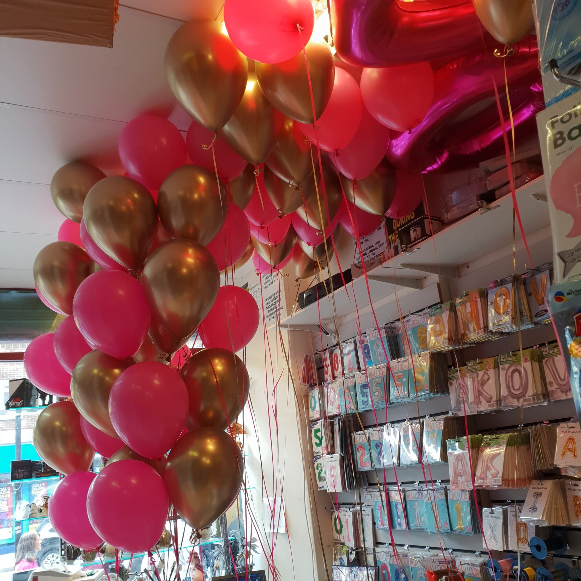 - 50* Metallic Gold and Pink Latex Helium Balloons ( want in other colour, call us now ).