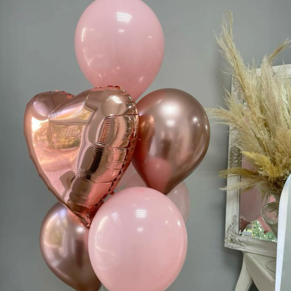 Set of 7 Balloons with Rose Gold Heart and Chrome Accents